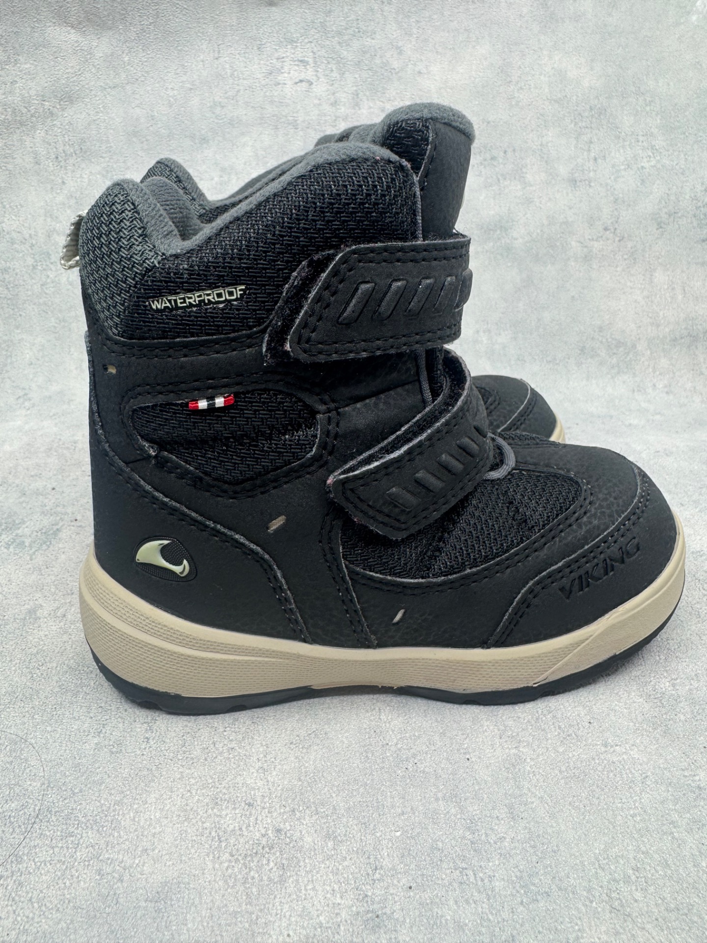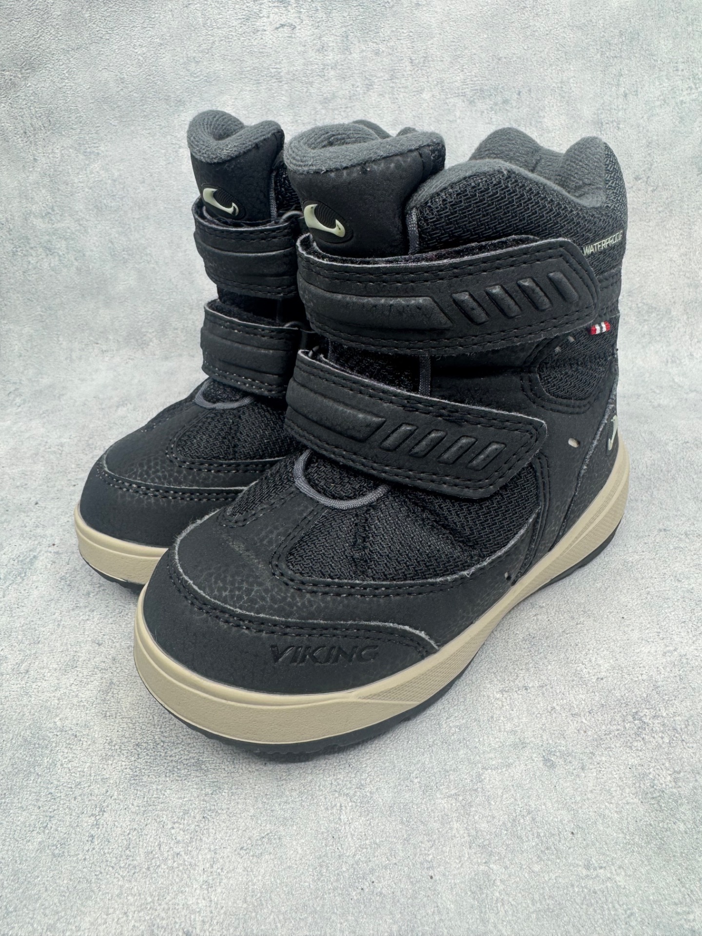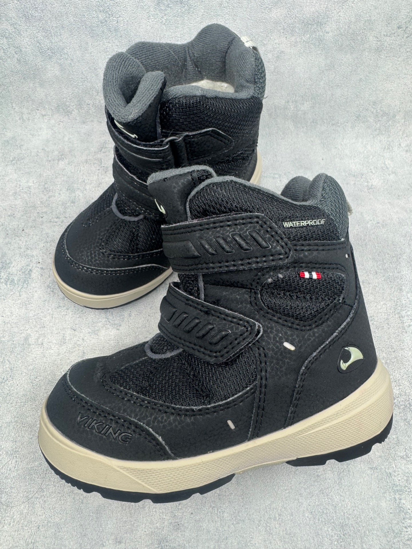 Erittiäin hyväkuntoiset, lähes uudenveroiset Vikingin talvikengät. Sisällä lämmin vuori. Kengissä ei ole lainkaan kulumaa ja ne ovat selvästi hyvin vähän käytetyt. Tarrat pitää erinomaisesti ja kengät on testattu juoksevan veden alla vedenpitäviksi.
