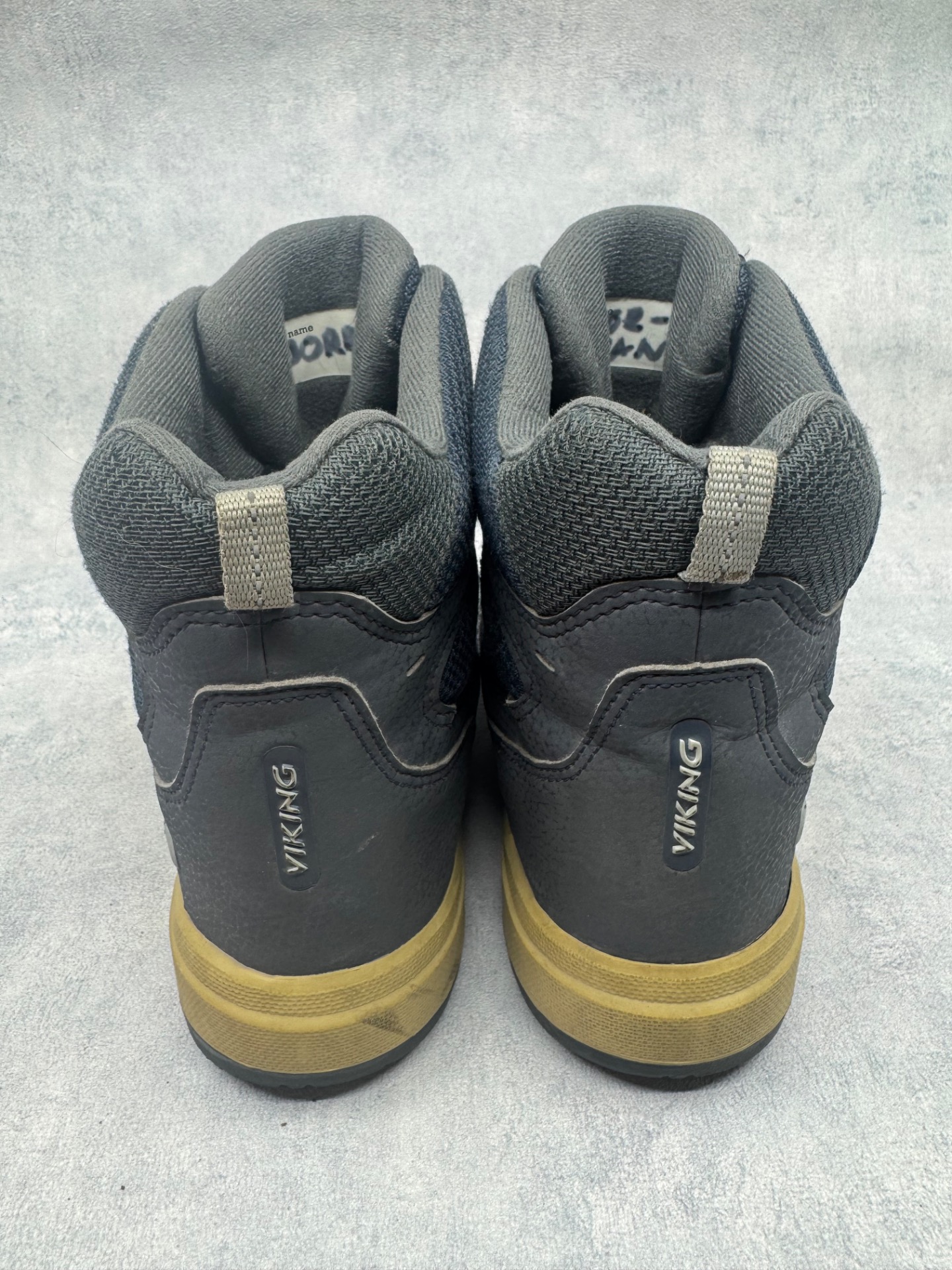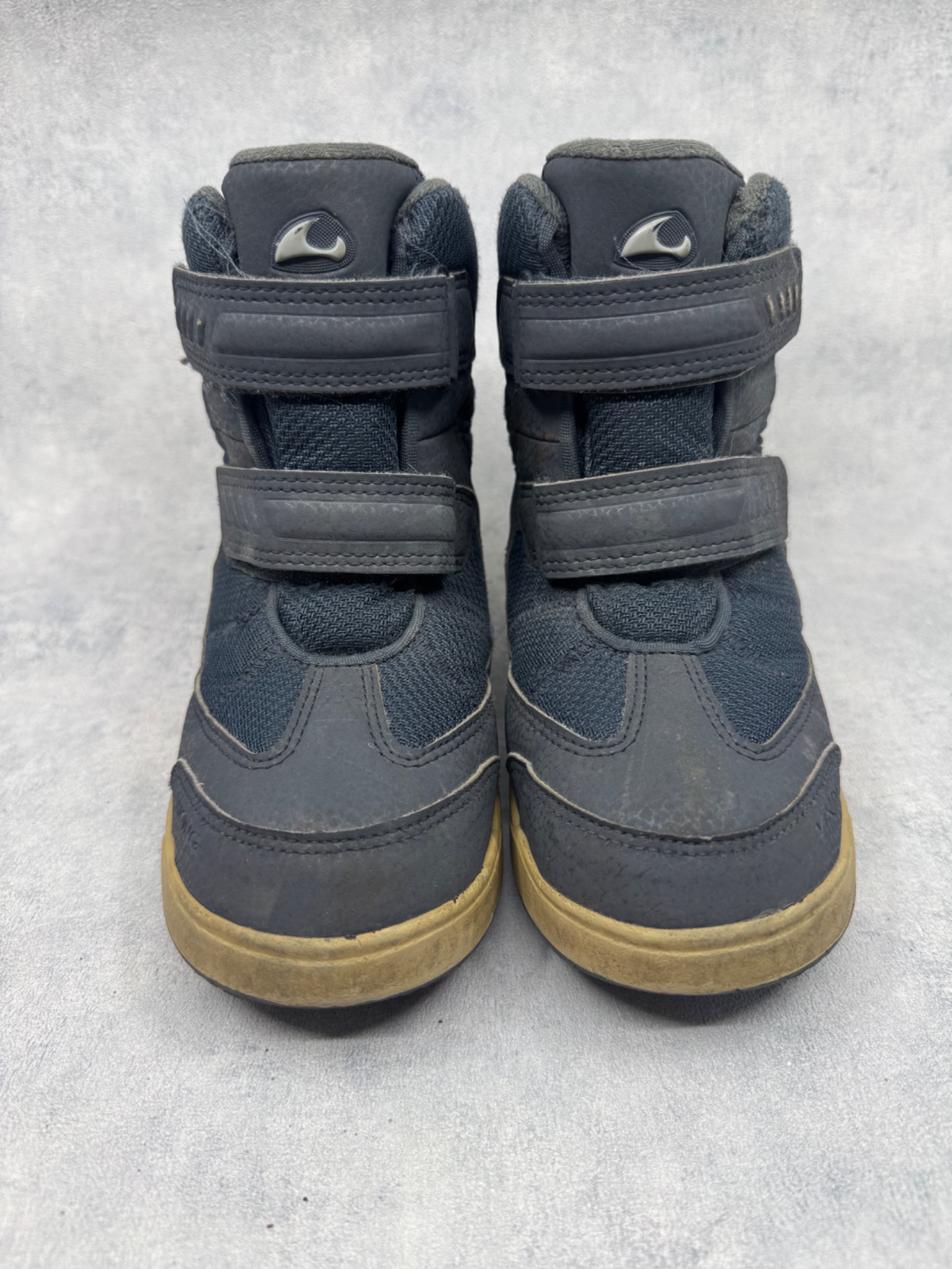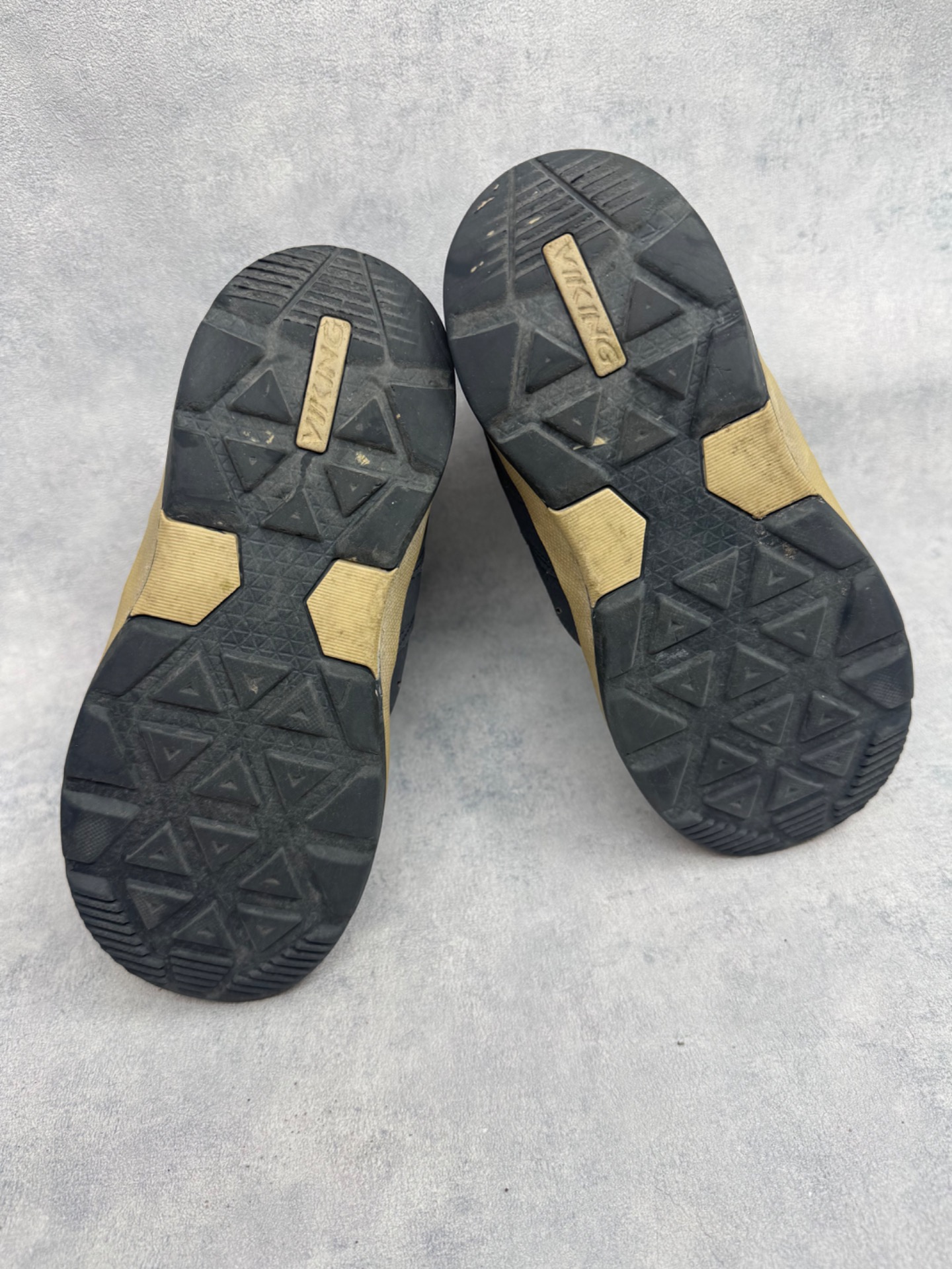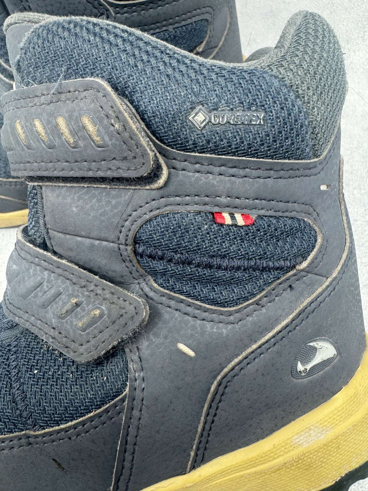 Hyväkuntoiset Vikingin talvikengät. Valkoiset osat tummentuneet, mutta muutoin kengät ovat oikein siistit. Sisällä lämmin vuori, hyvässä kunnossa. Tarrat pitävät erinomaisesti ja kengät on testattu vedenpitäviksi juoksevan veden alla.