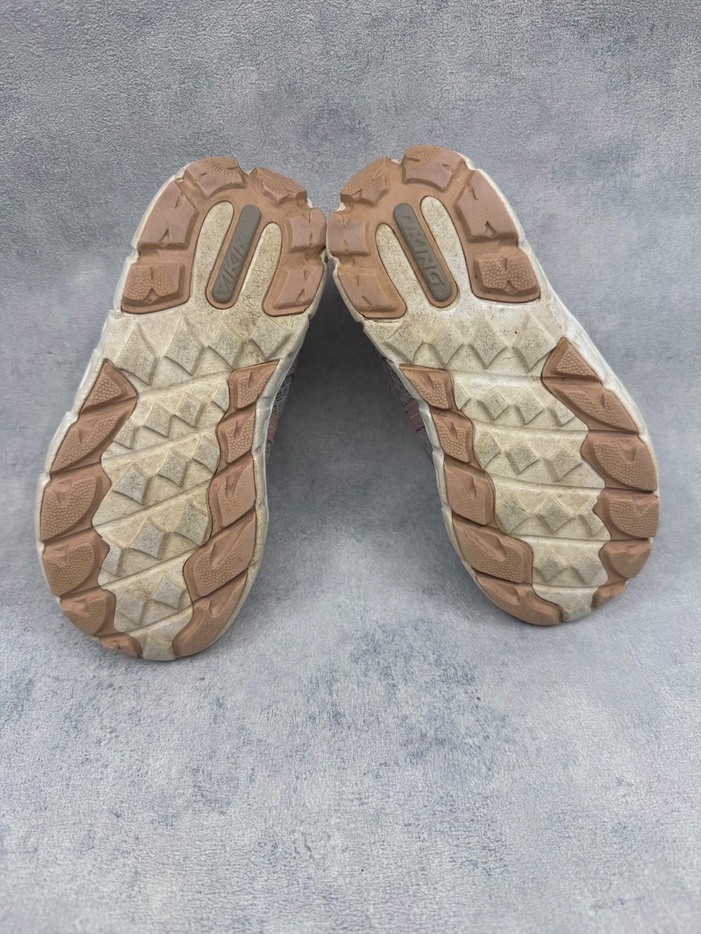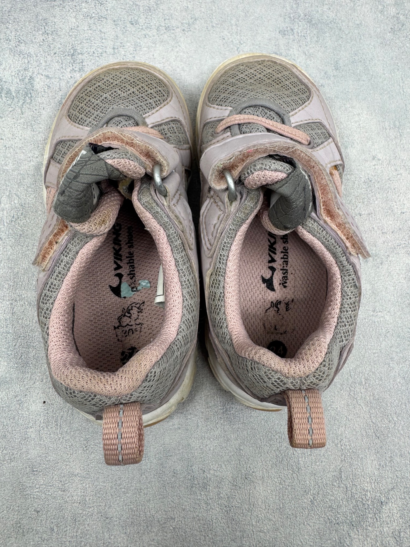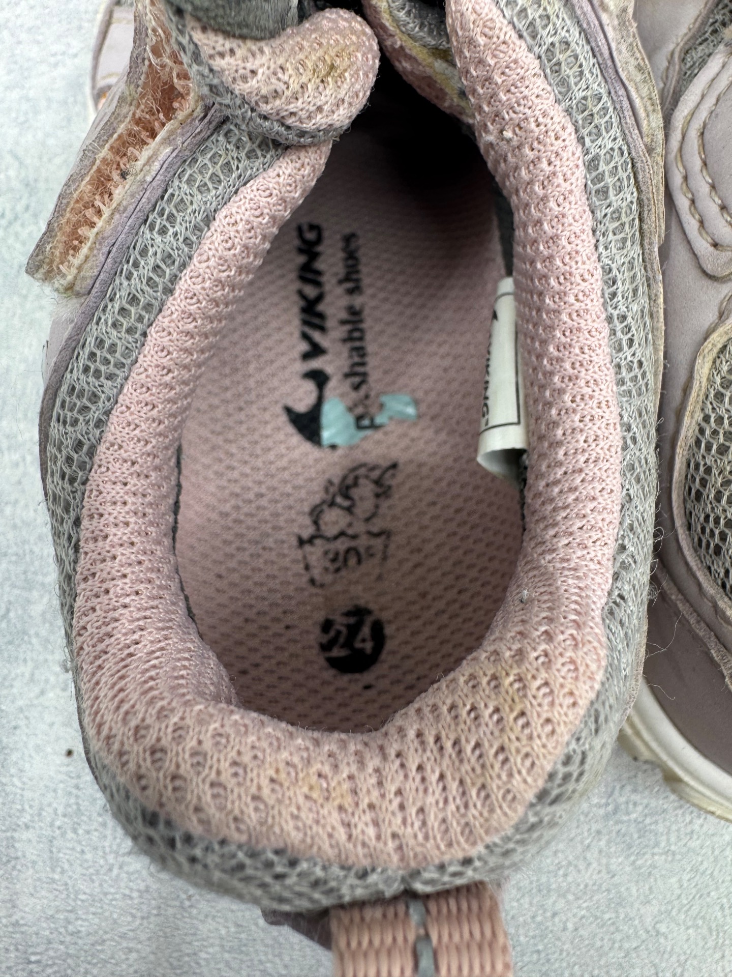 Erittäin hyväkuntoiset, selvästi vähän käytetyt Vikingin välikausikengät. Tarrat pitävät erinomaisesti ja kengät on testattu vedenpitäviksi juoksevan veden alla. Aavistus käyttölikaa/jälkeä kärjissä. Kengät voi pestä pesukoneessa 30 asteessa.