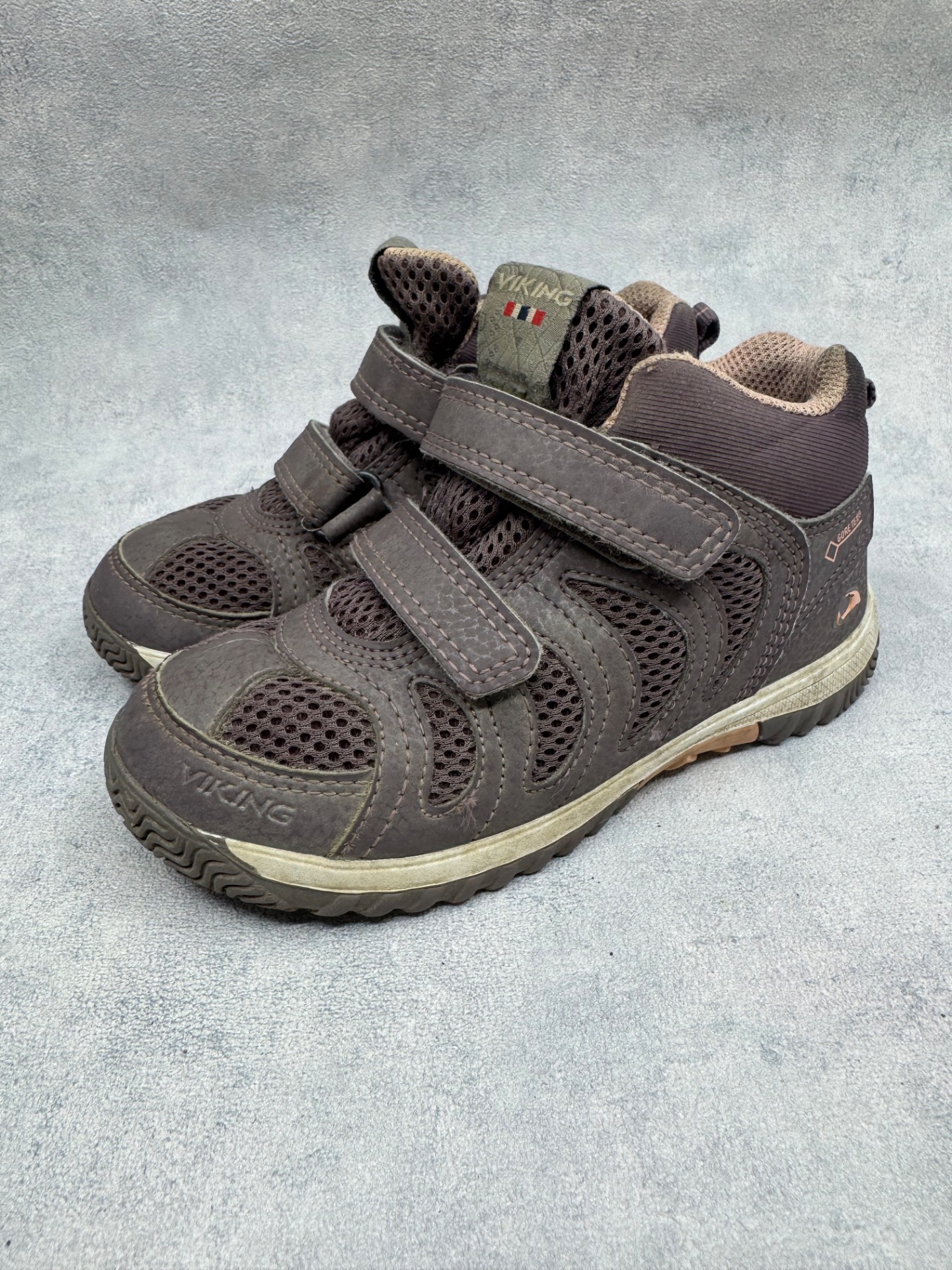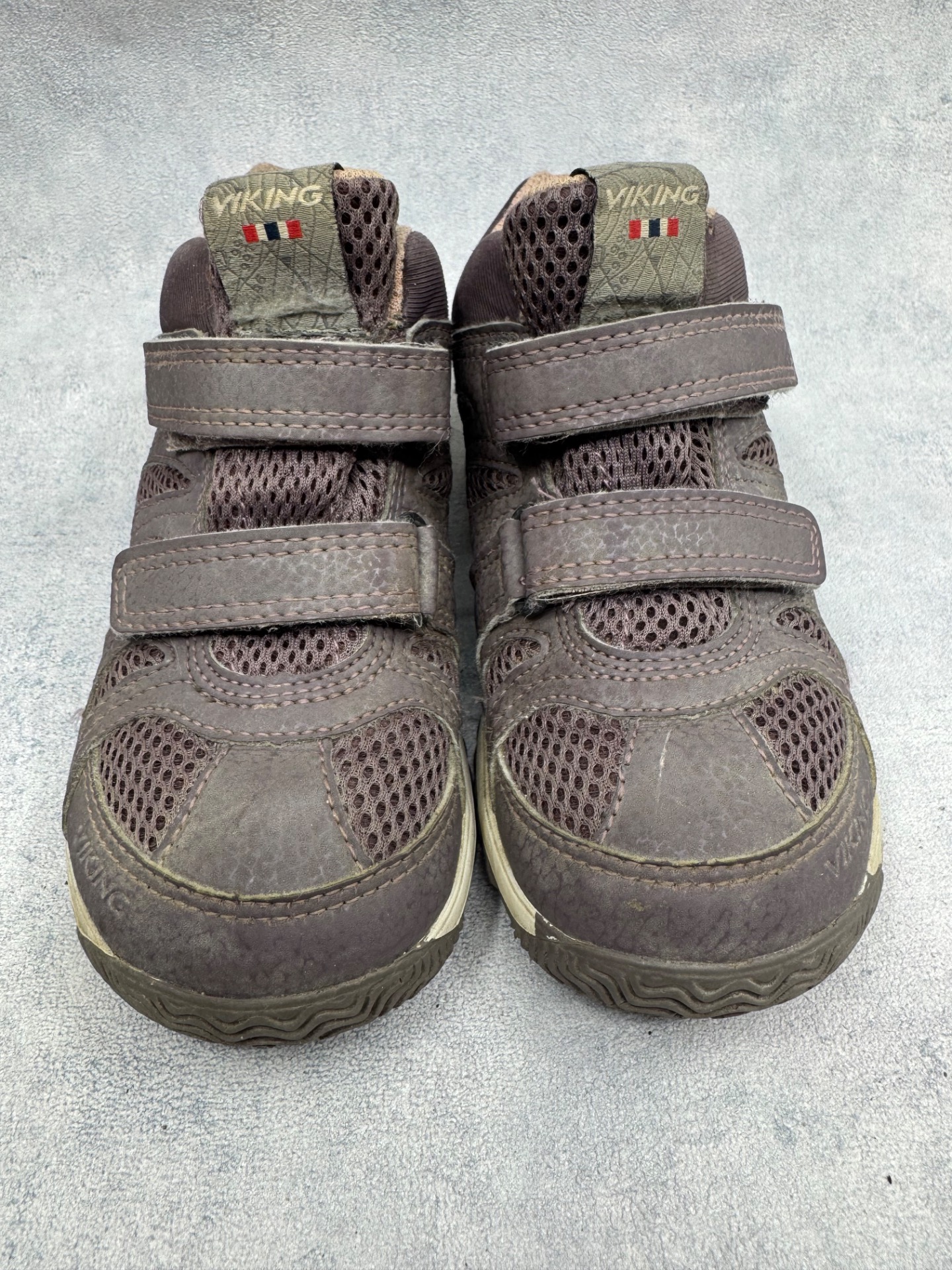 Erittäin hyväkuntoiset Vikingin välikausikengät. Hieman käyttölikaa pinnassa. Tarrat pitää erinomaisesti ja kengät on testattu juoksevan veden alla vedenpitäviksi.