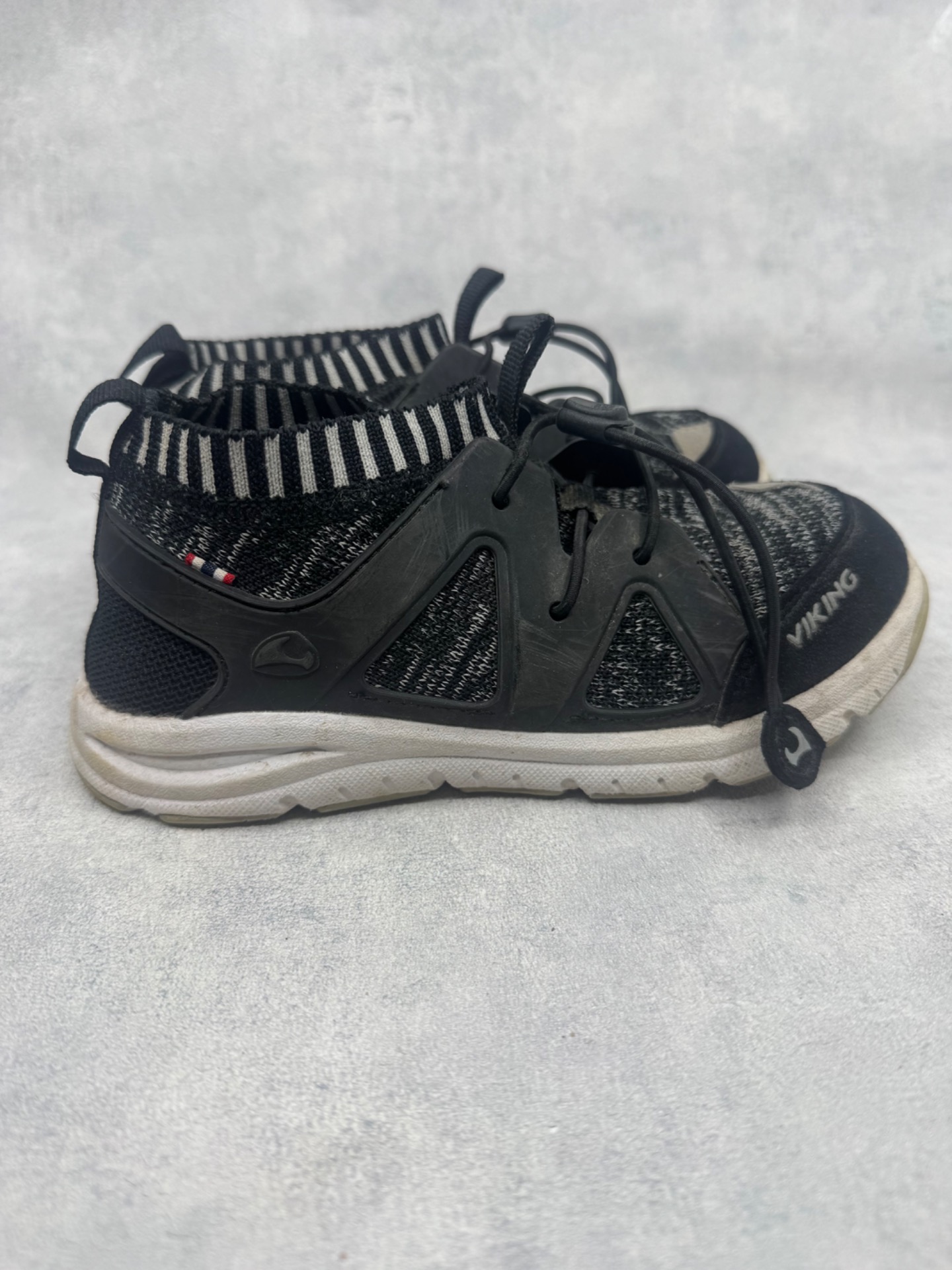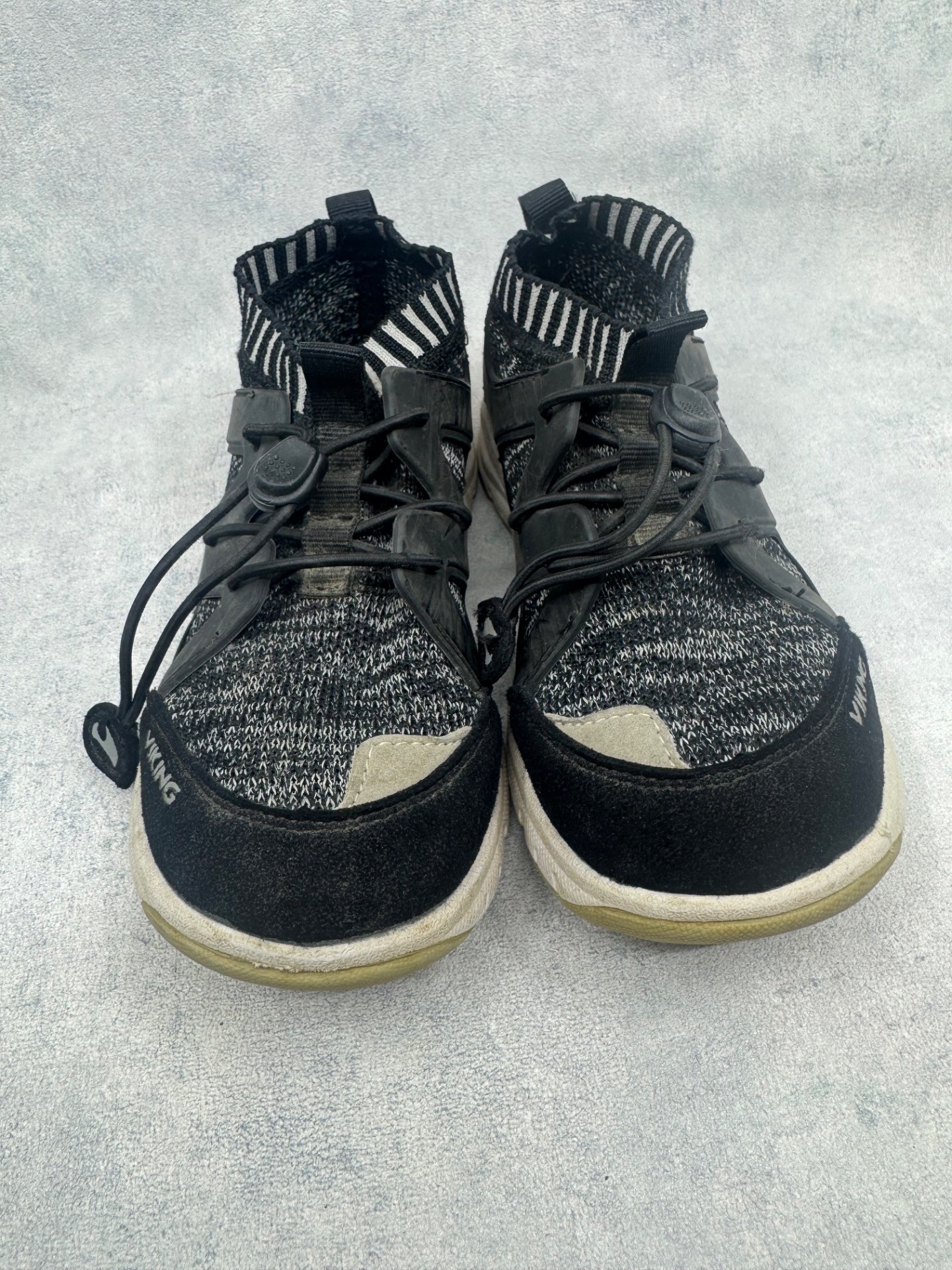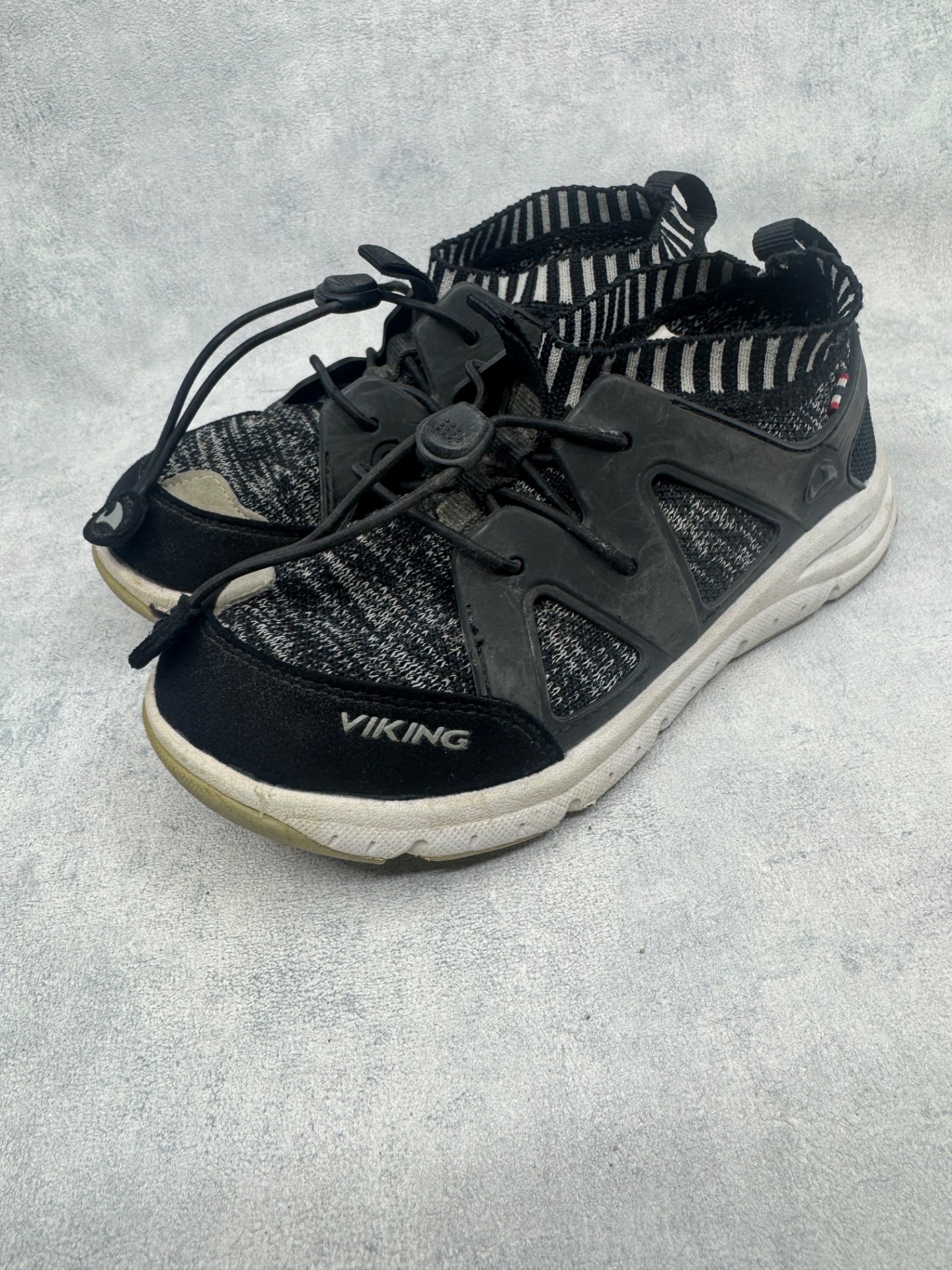 Erittäin hyväkuntoiset Vikingin mustat lenkkarit. Selvästi vähän käytetyt, si kulumaa. Aavistus käyttölikaa pinnalla.