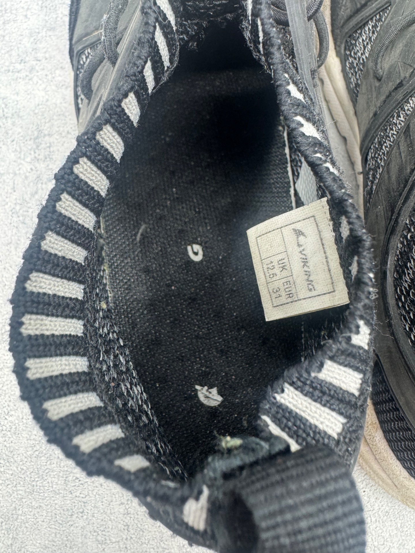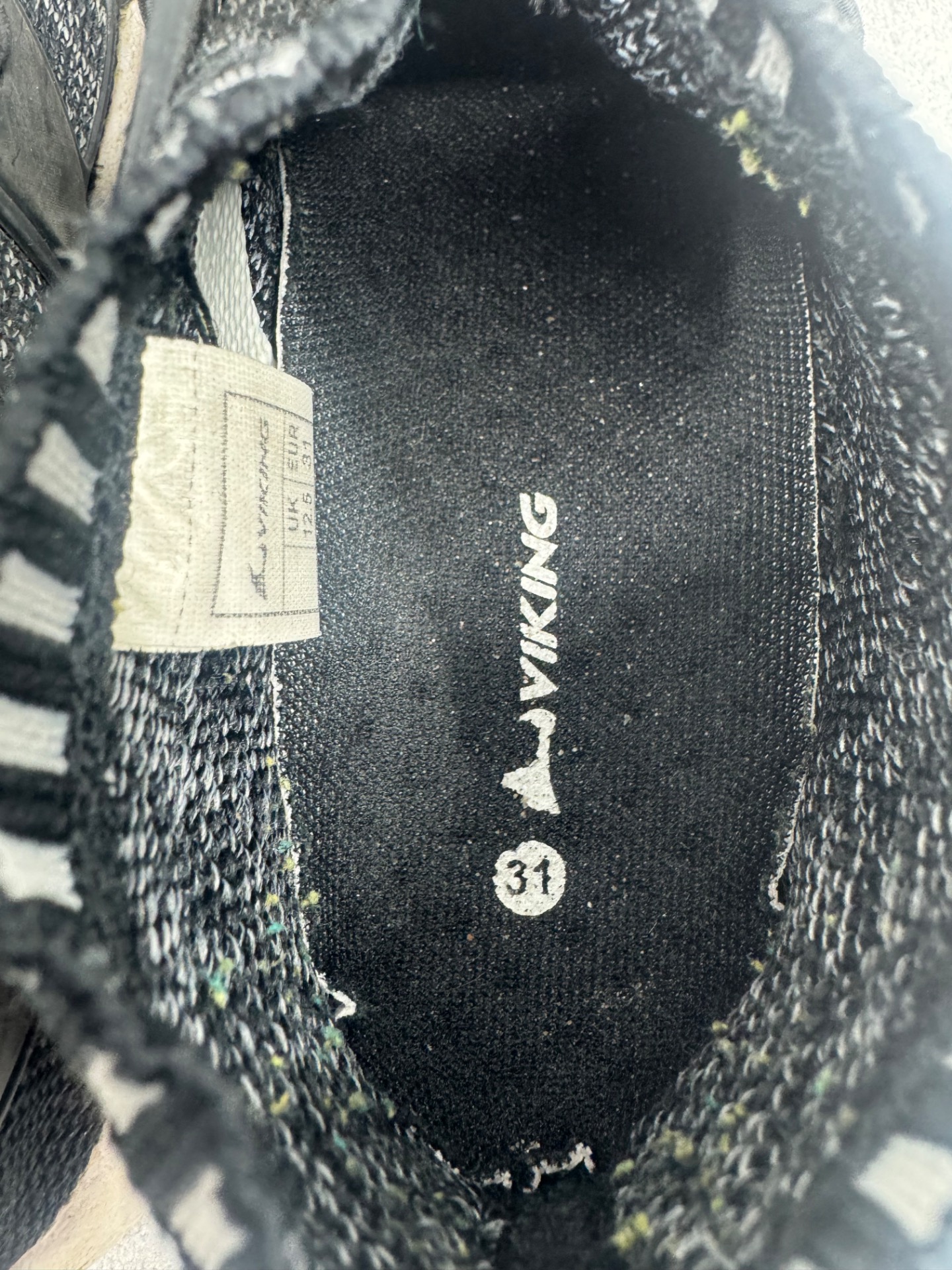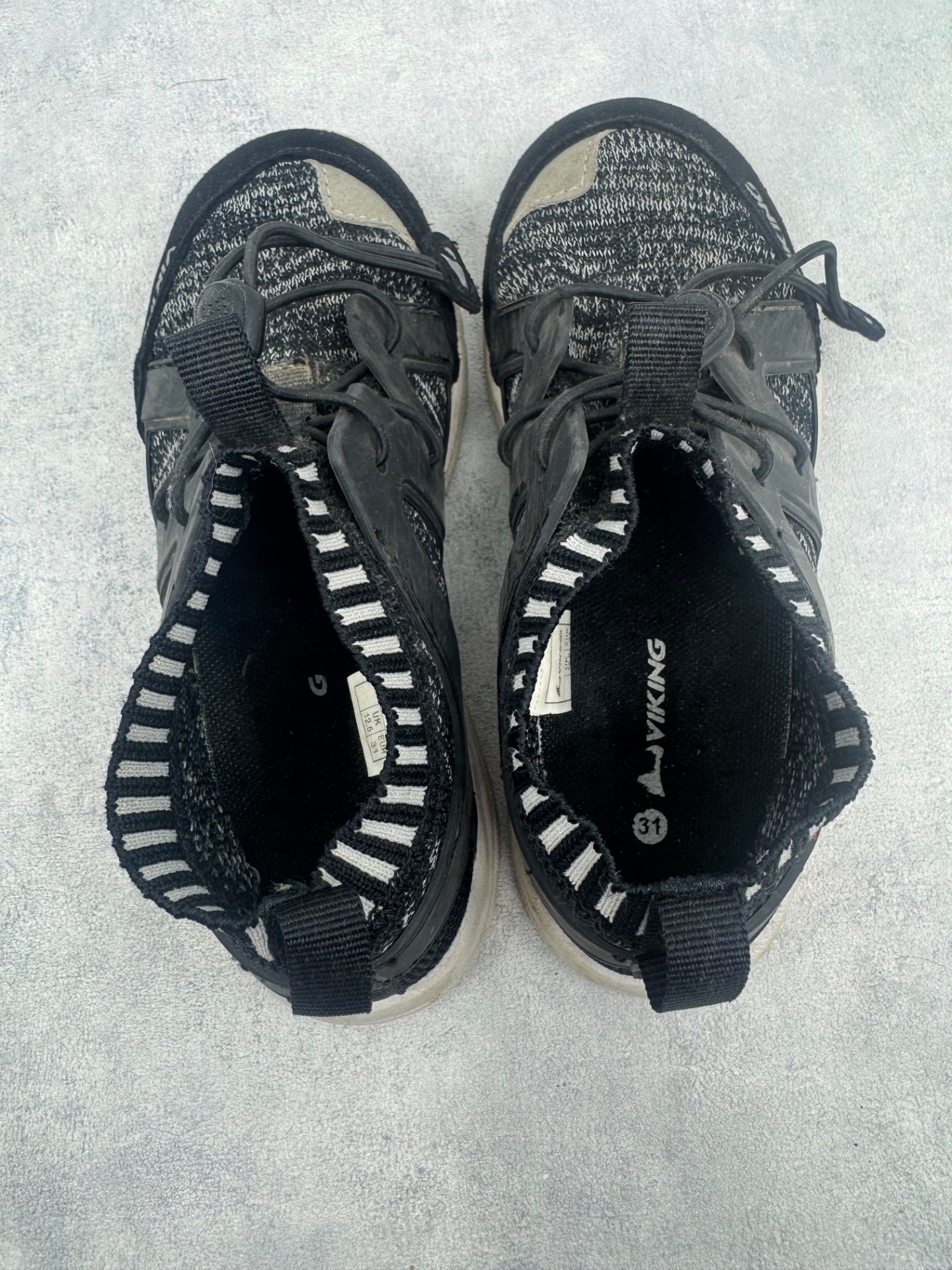Erittäin hyväkuntoiset Vikingin mustat lenkkarit. Selvästi vähän käytetyt, si kulumaa. Aavistus käyttölikaa pinnalla.