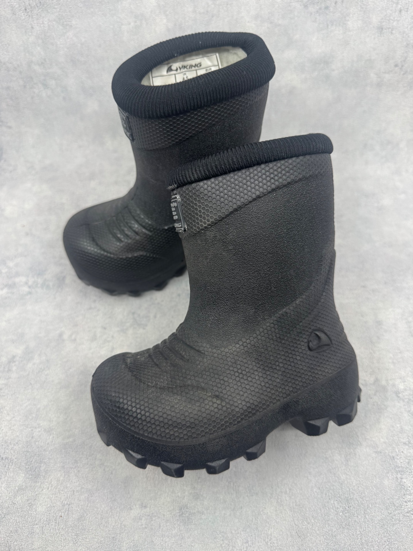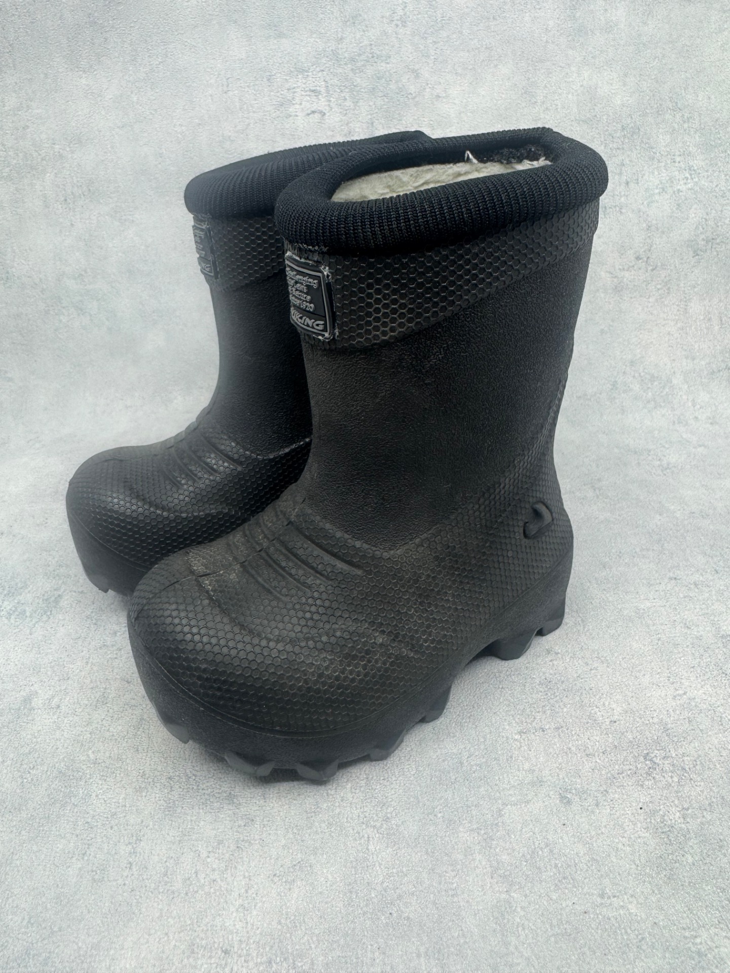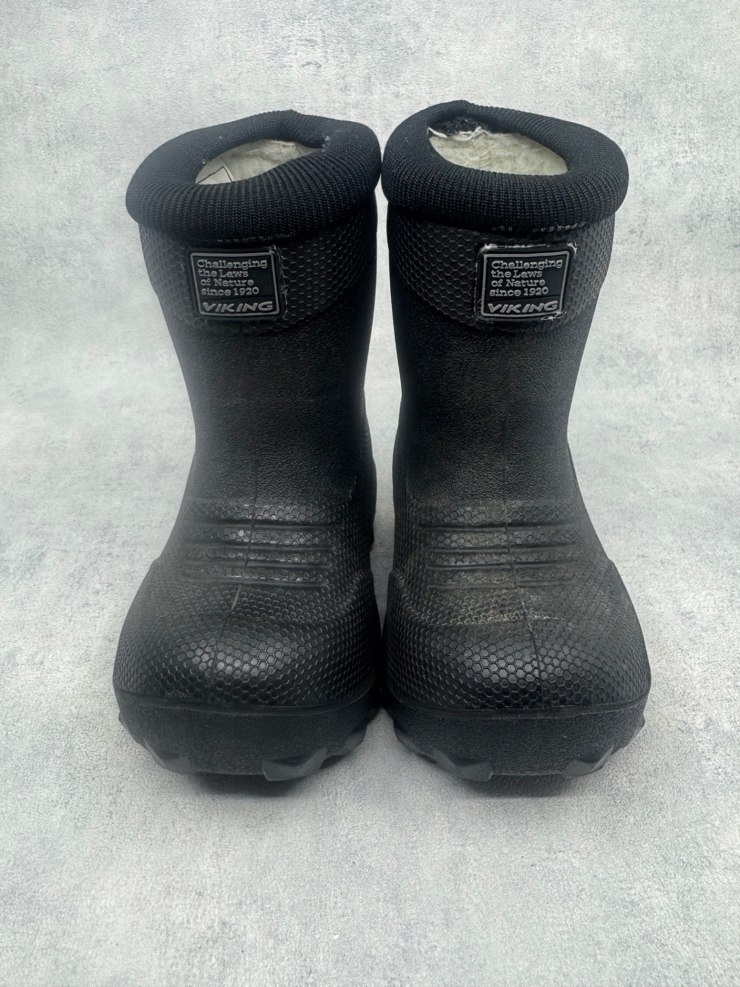 Erittäin hyväkuntoiset, lähes uudenveroiset Vikingin talvikumisaappaat. Sisällä pehmeä ja lämmin vuori, erinomaisessa kunnossa. Testattu vedenpitäviksi. Hyvä, pitävä pohja.