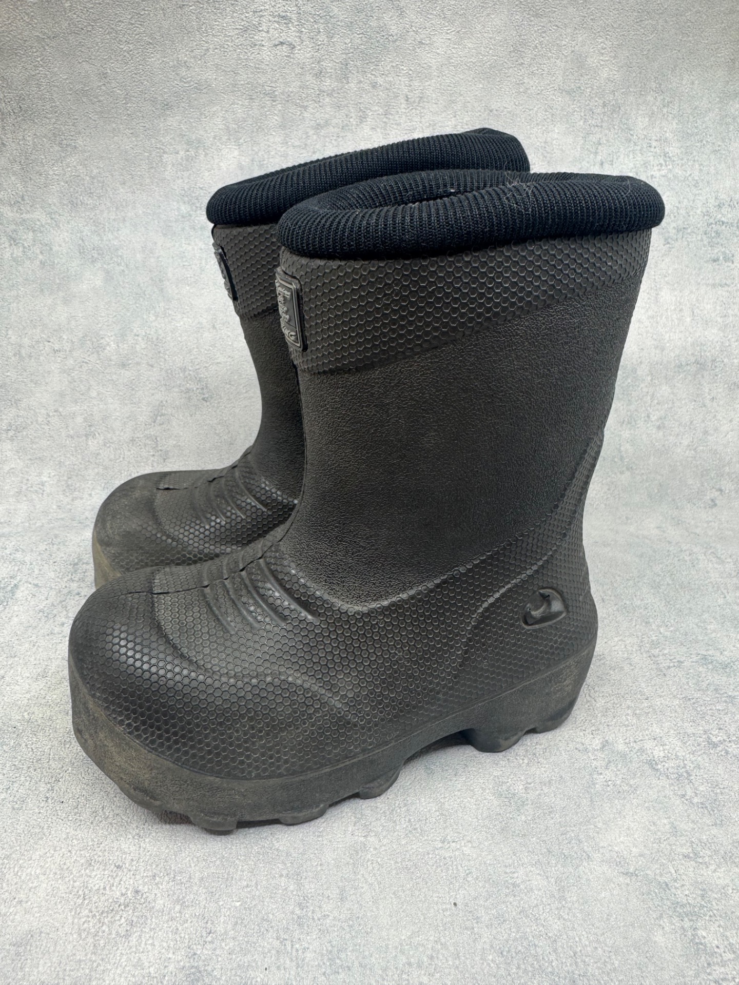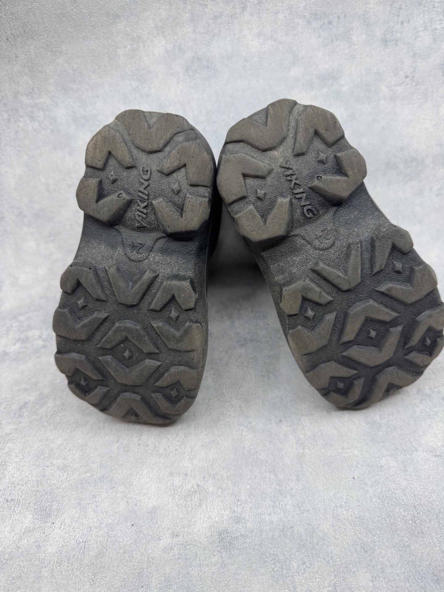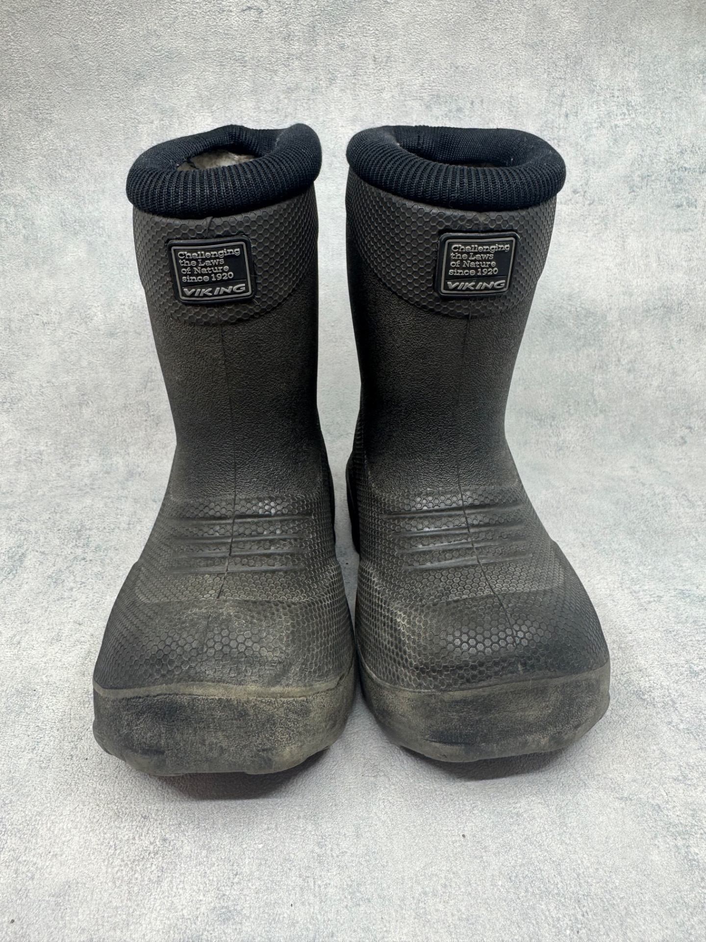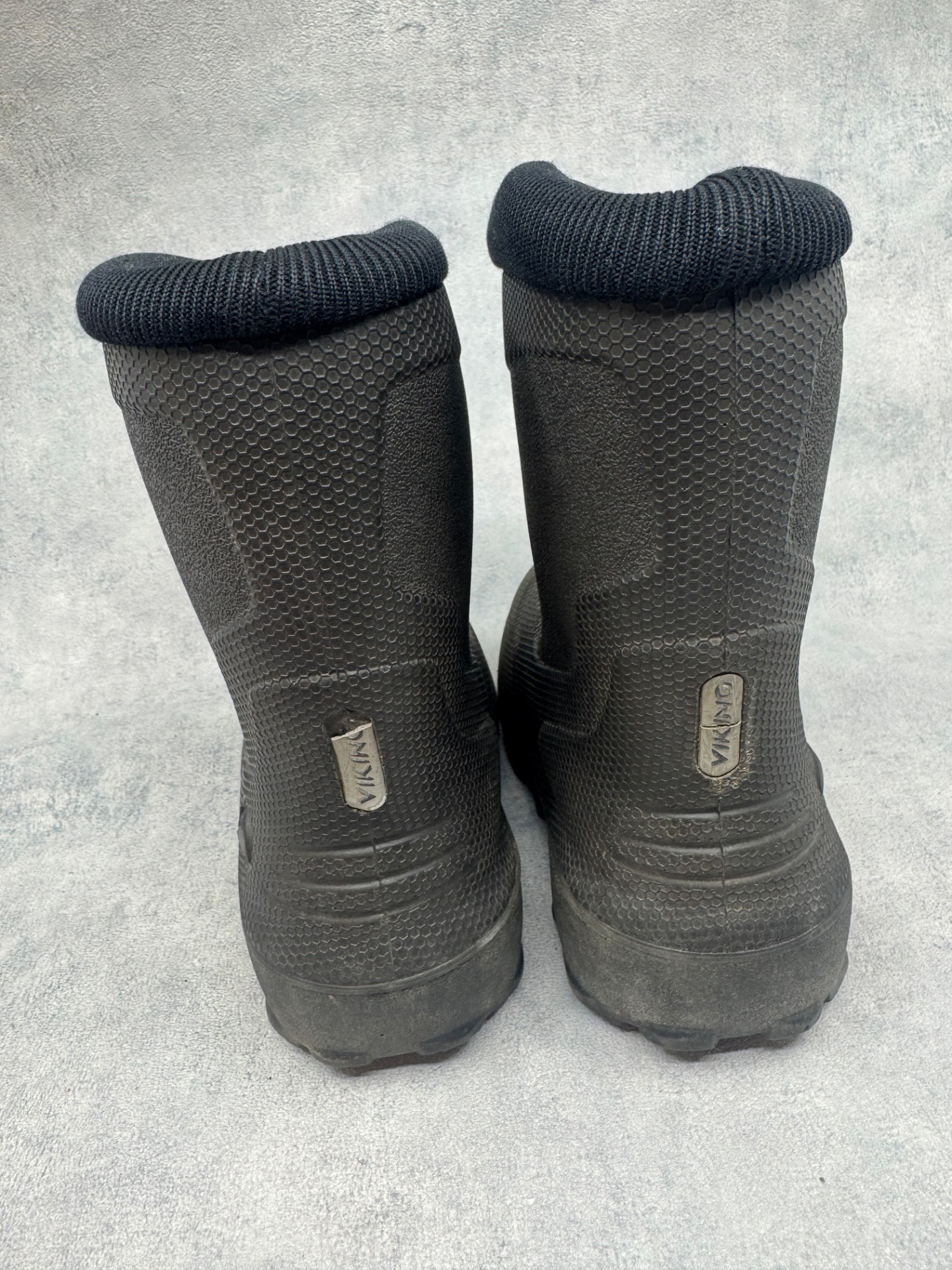 Hyväkuntoiset Vikingin talvikumisaappaat. Sisällä lämmin vuori, hyvässä kunnossa. Pientä käytönjälkeä sekä pinttynyttä käyttölikaa pinnassa. Testattu vedenpitäviksi. Hyvä, pitävä pohja.