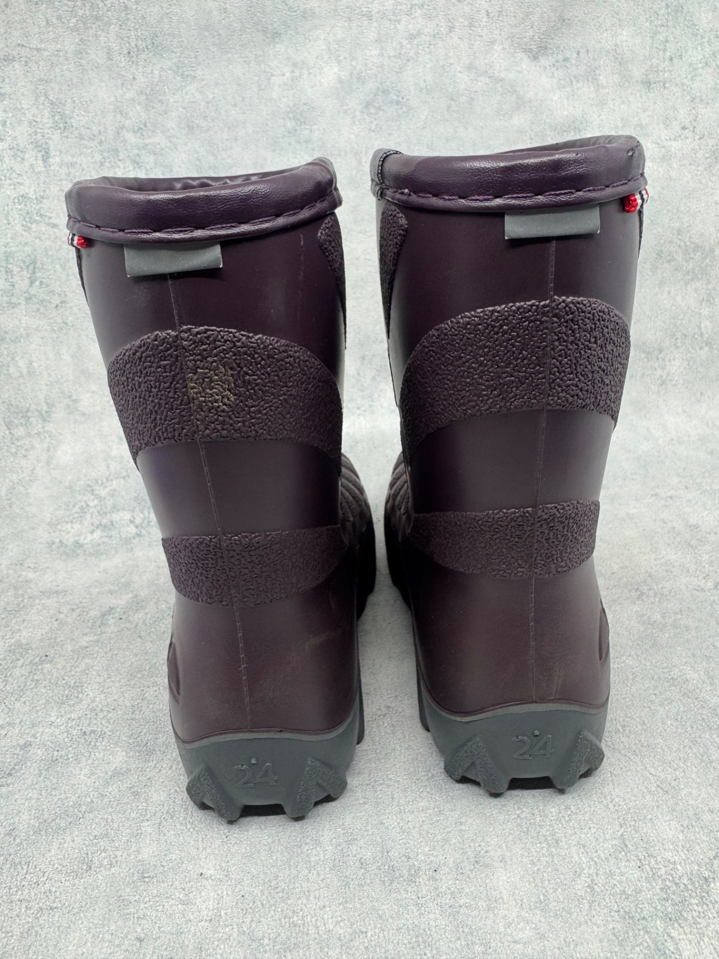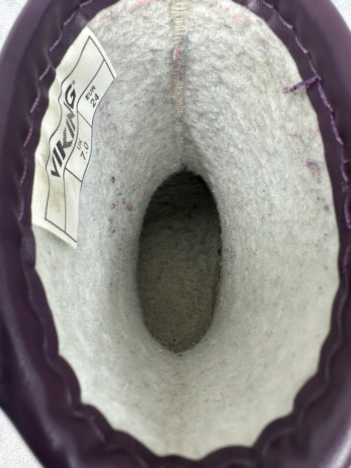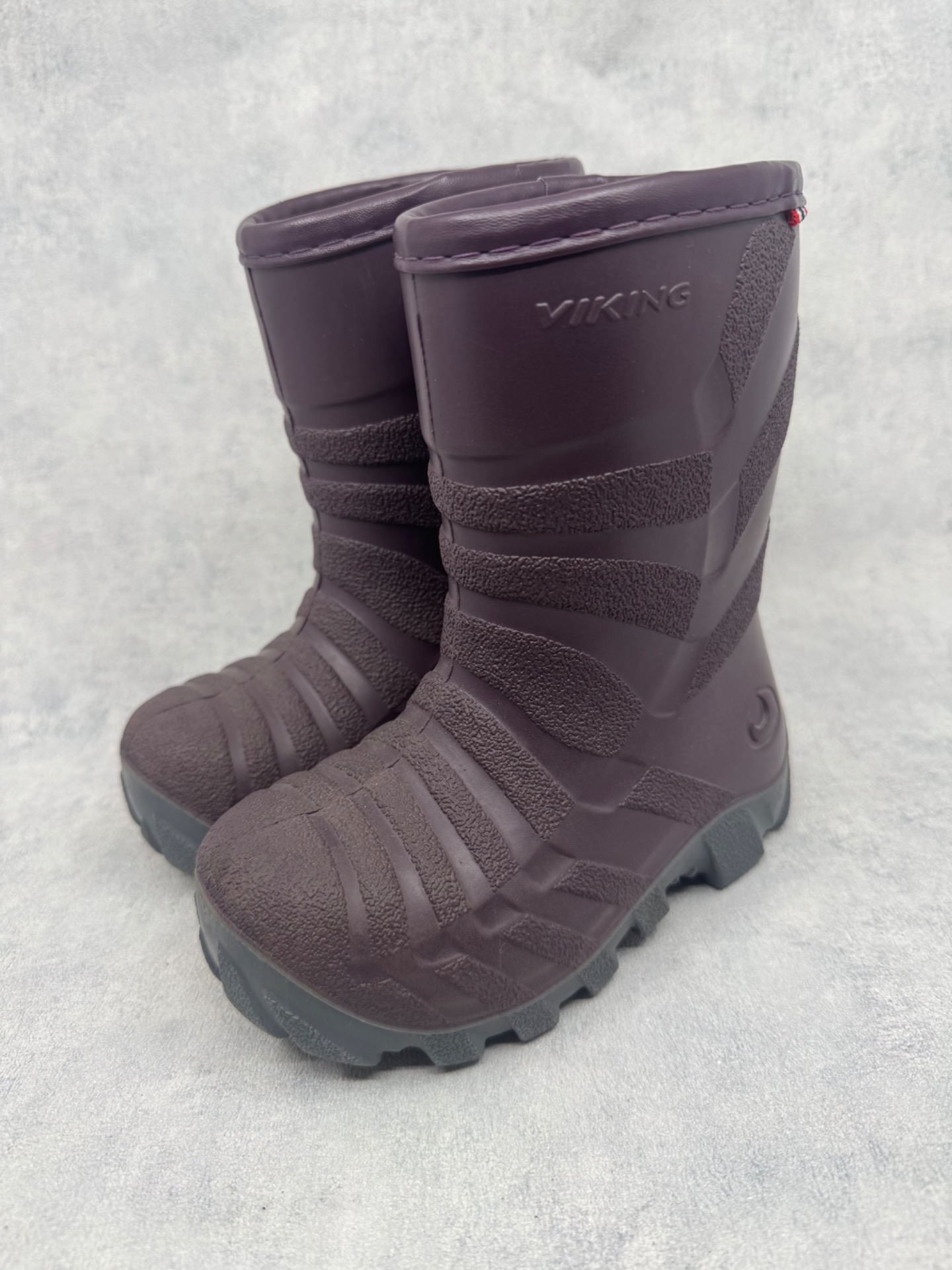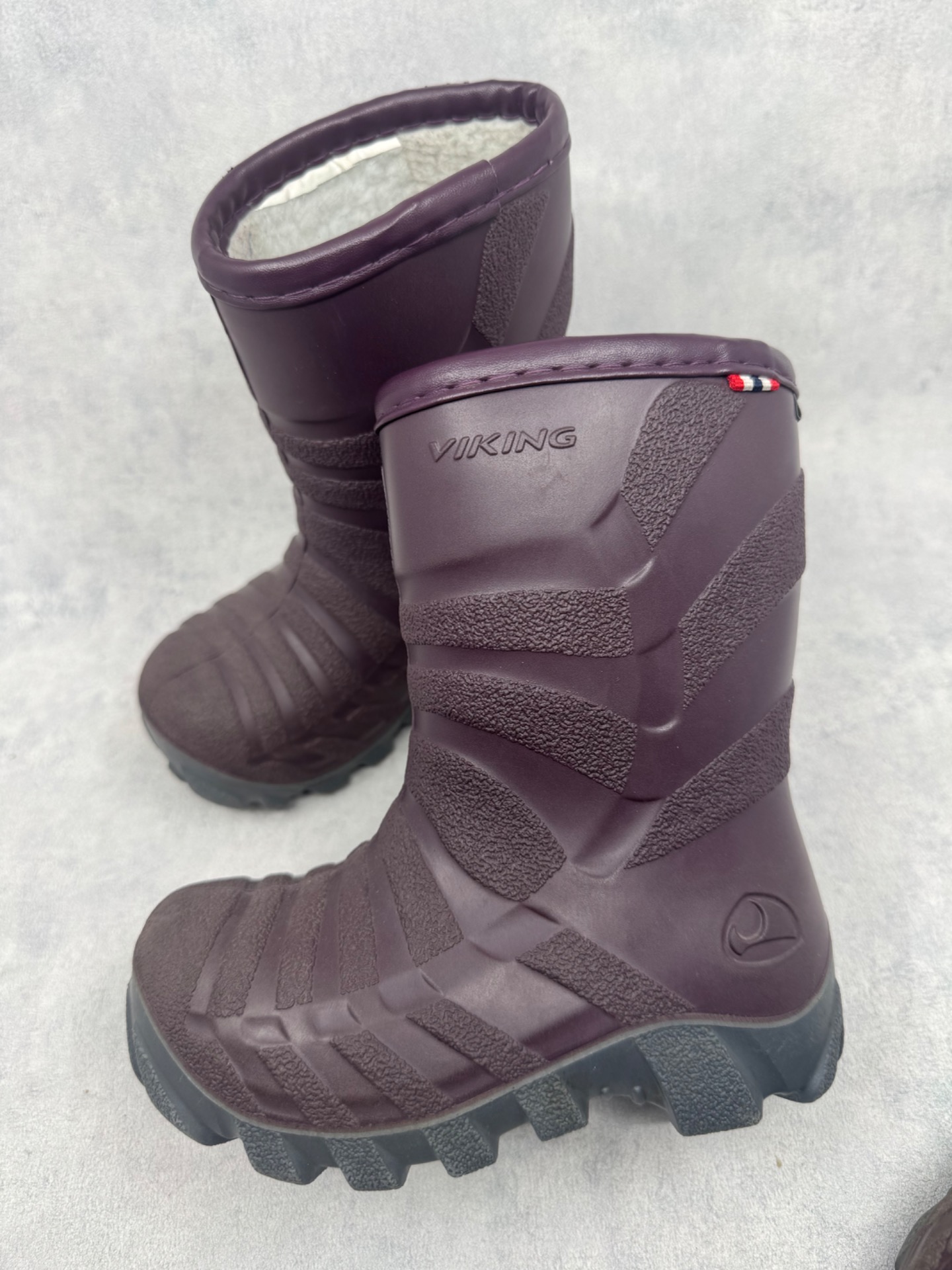 Erittäin hyväkuntoiset Vikingin violetit talvikumisappaat. Sisällä lämmin vuori. Testattu vedenpitäviksi. Hyvä, pitävä pohja.