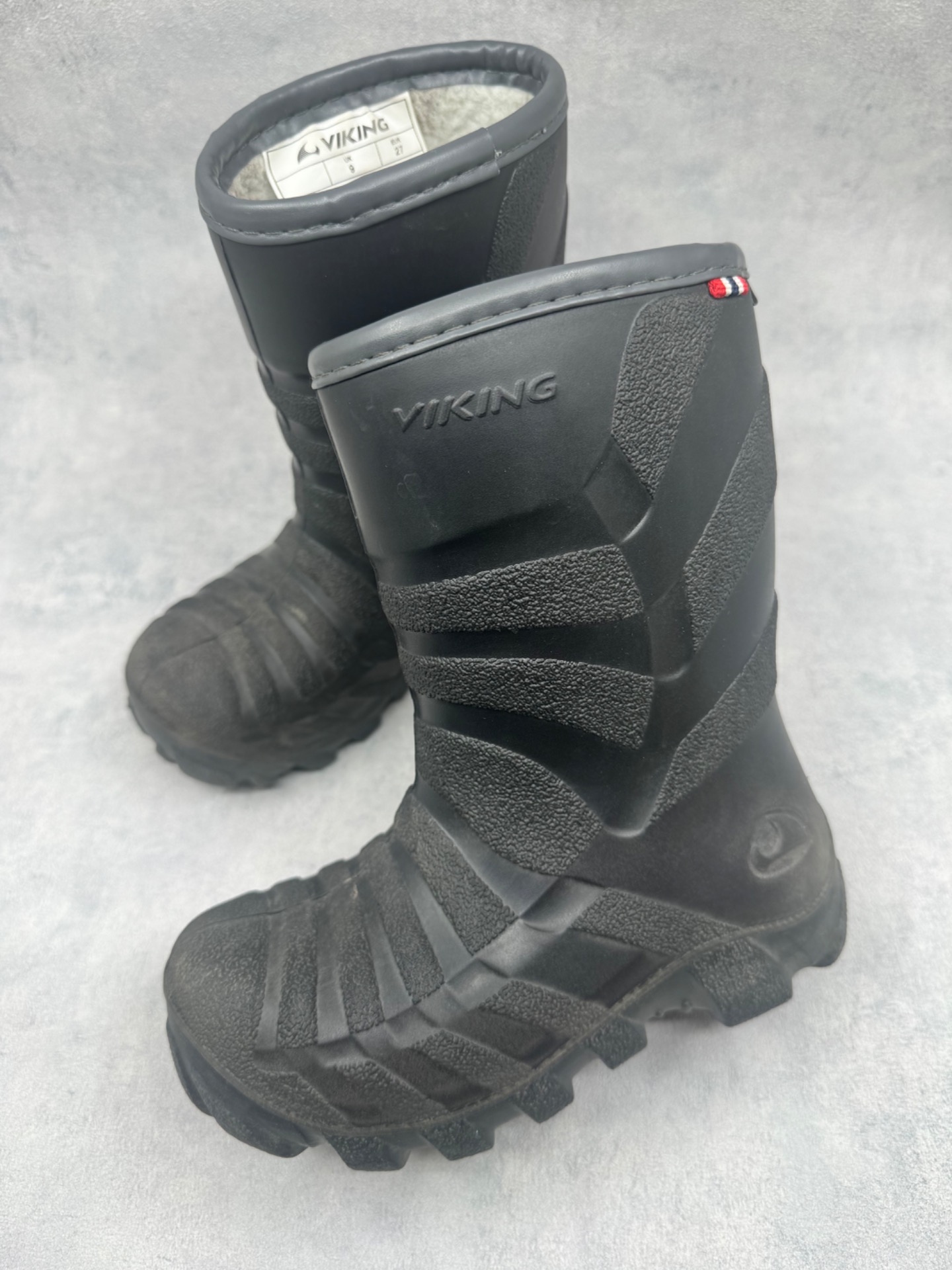 Erittäin hyväkuntoiset Vikingin talvikumisaappaat. Sisällä lämmin vuori. Hyvä, pitävä pohja. Aavistus käyttölikaa pinnassa. Testattu vedenpitäviksi.