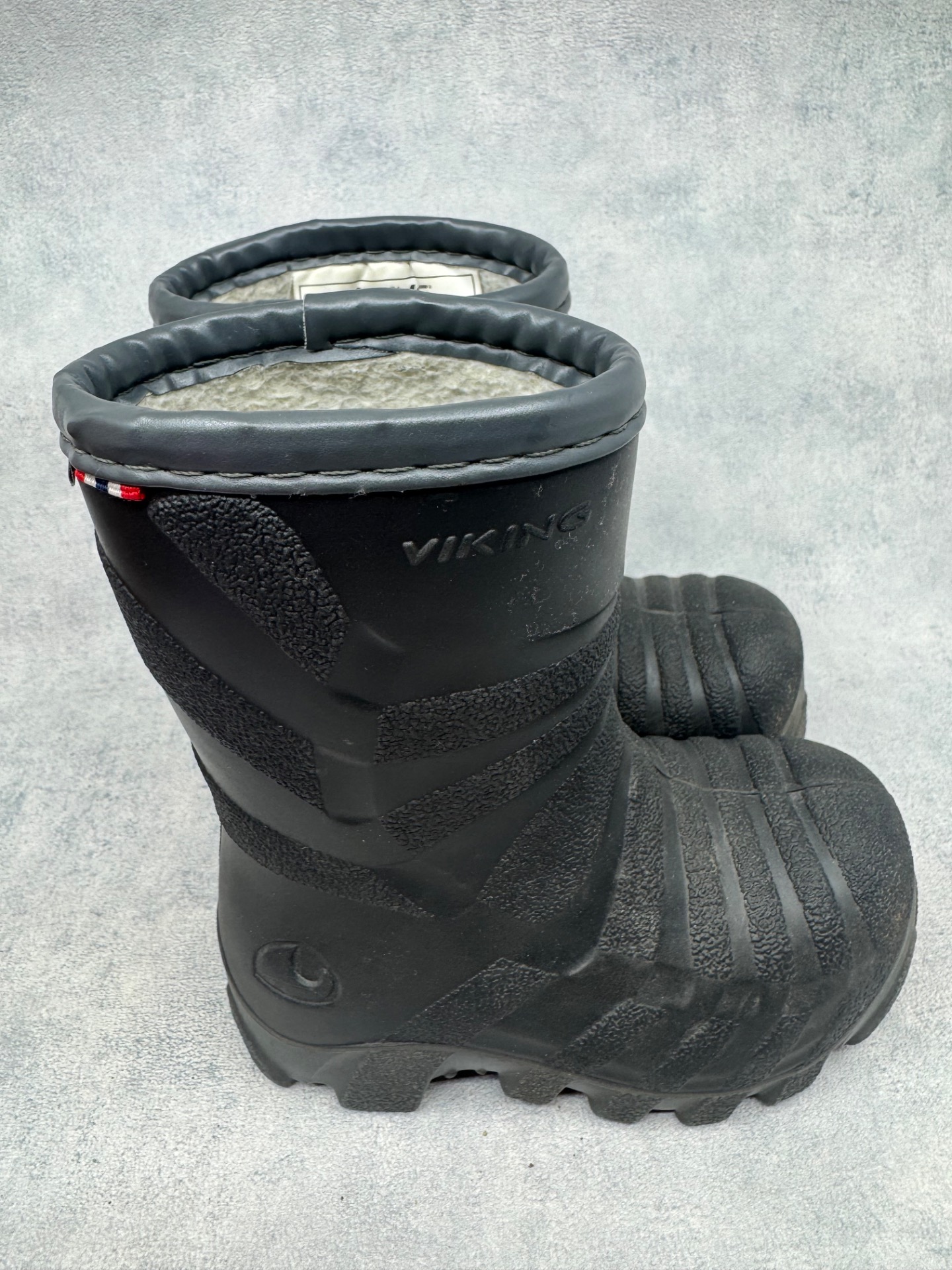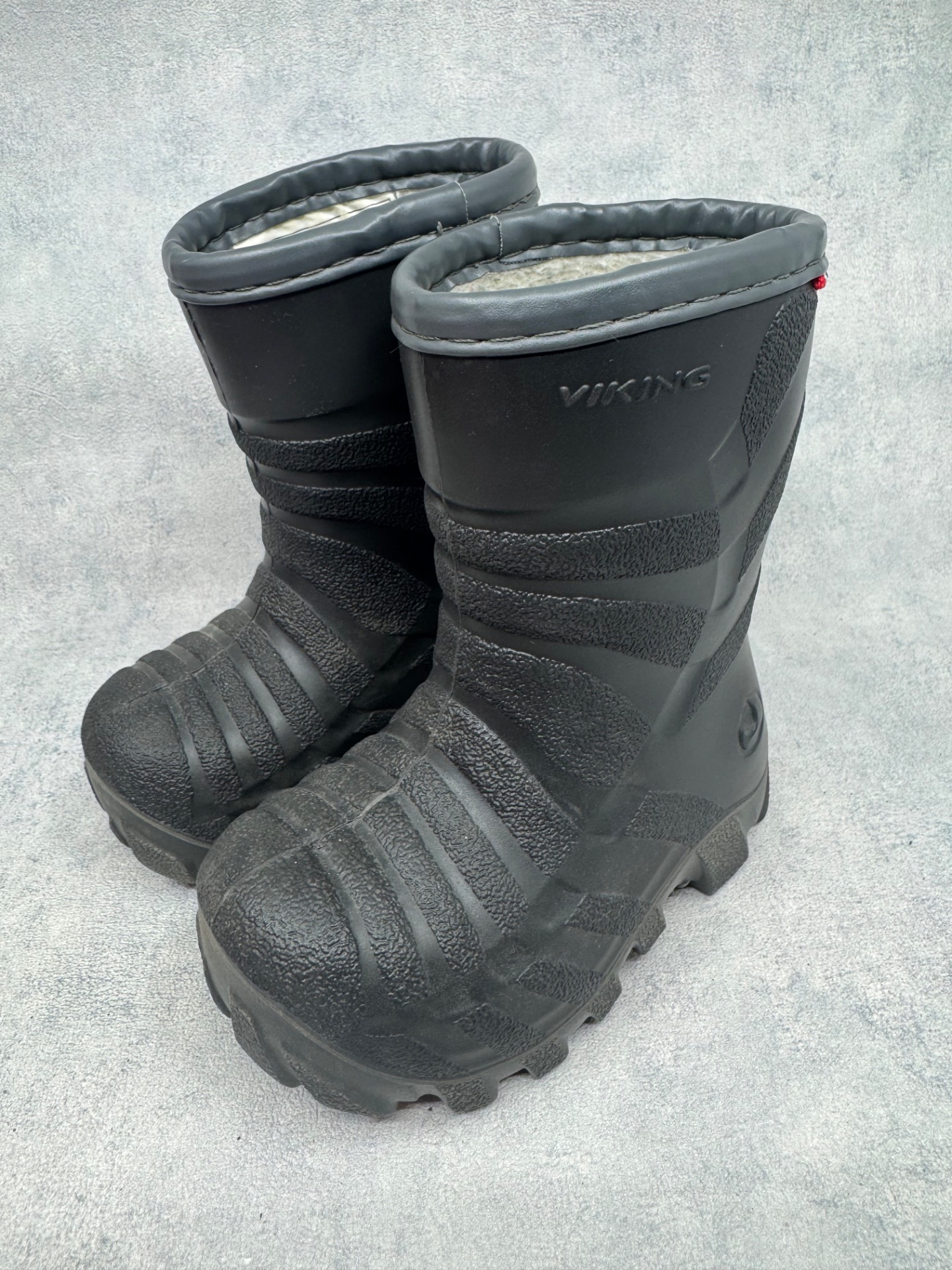 Erittäin hyväkuntoiset, lähes uudenveroiset Vikingin tummanharmaat talvikumisaappaat. Sisällä lämmin vuori. Hyvä, pitävä